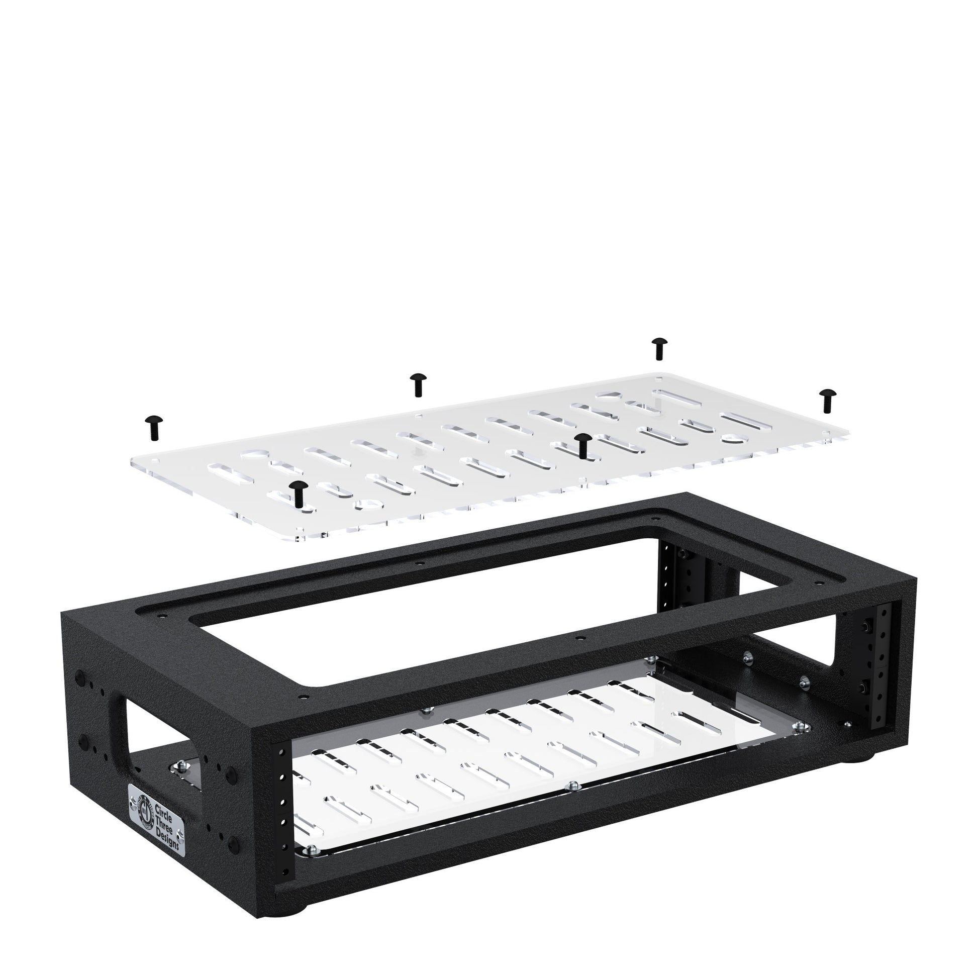 - Top plastic panel is removable to allow additional access to the inside of rack.