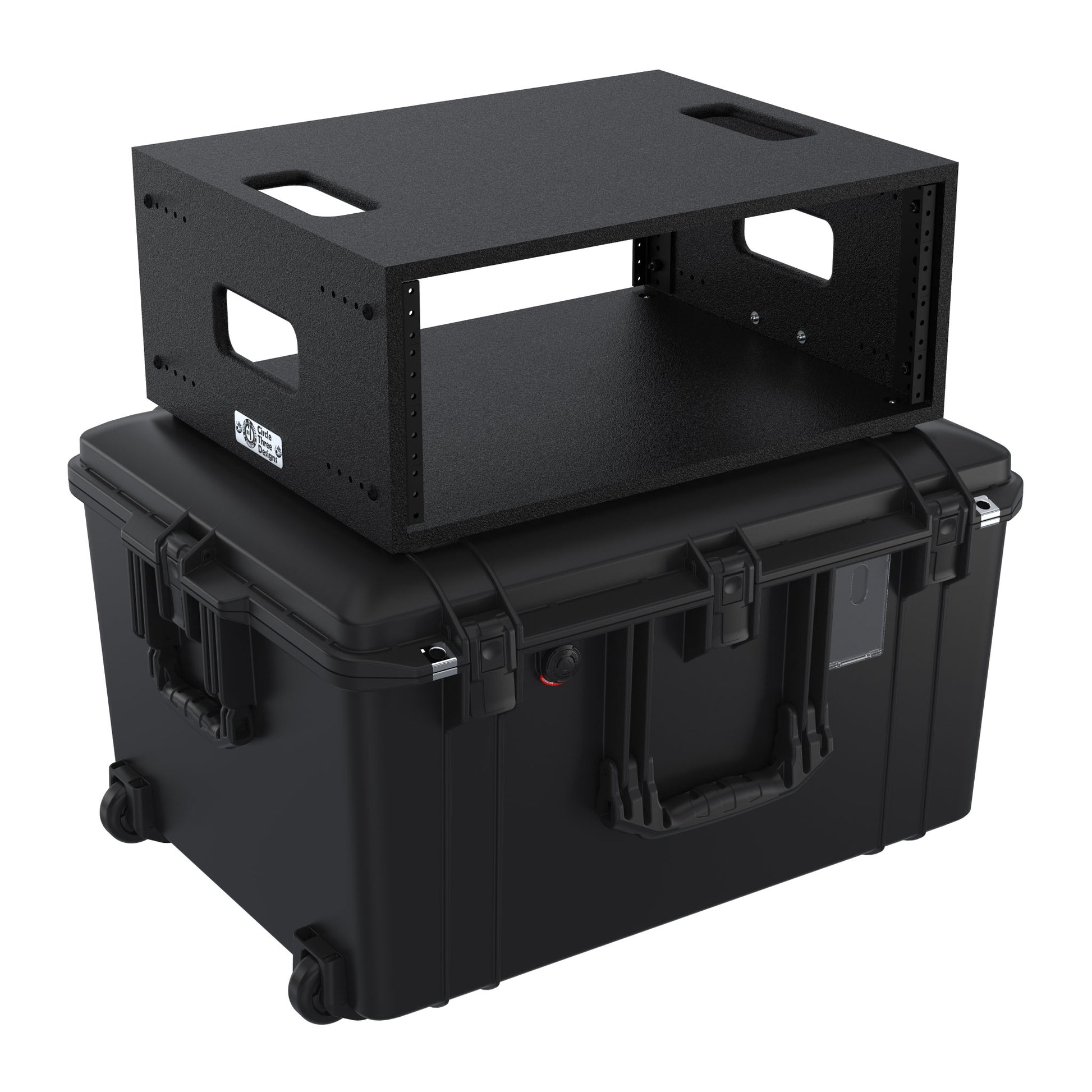 - 4RU has an accessory cavity below the rack (23" x 7.75" x 3.125").