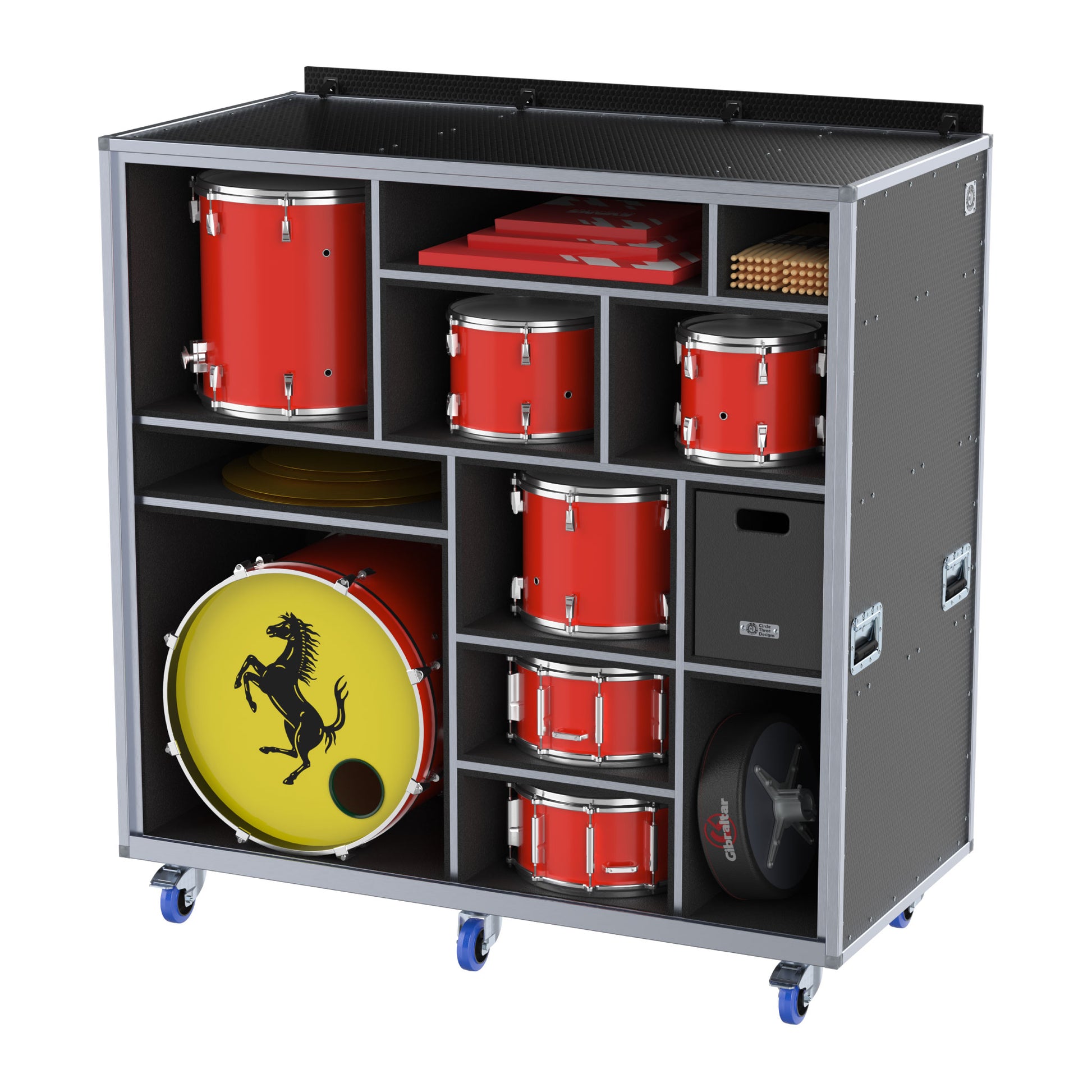 Layout: CPAC Drum Vault Design 9.1. Drum, cymbal, and accessory cavities have a black polyethylene foam interior.