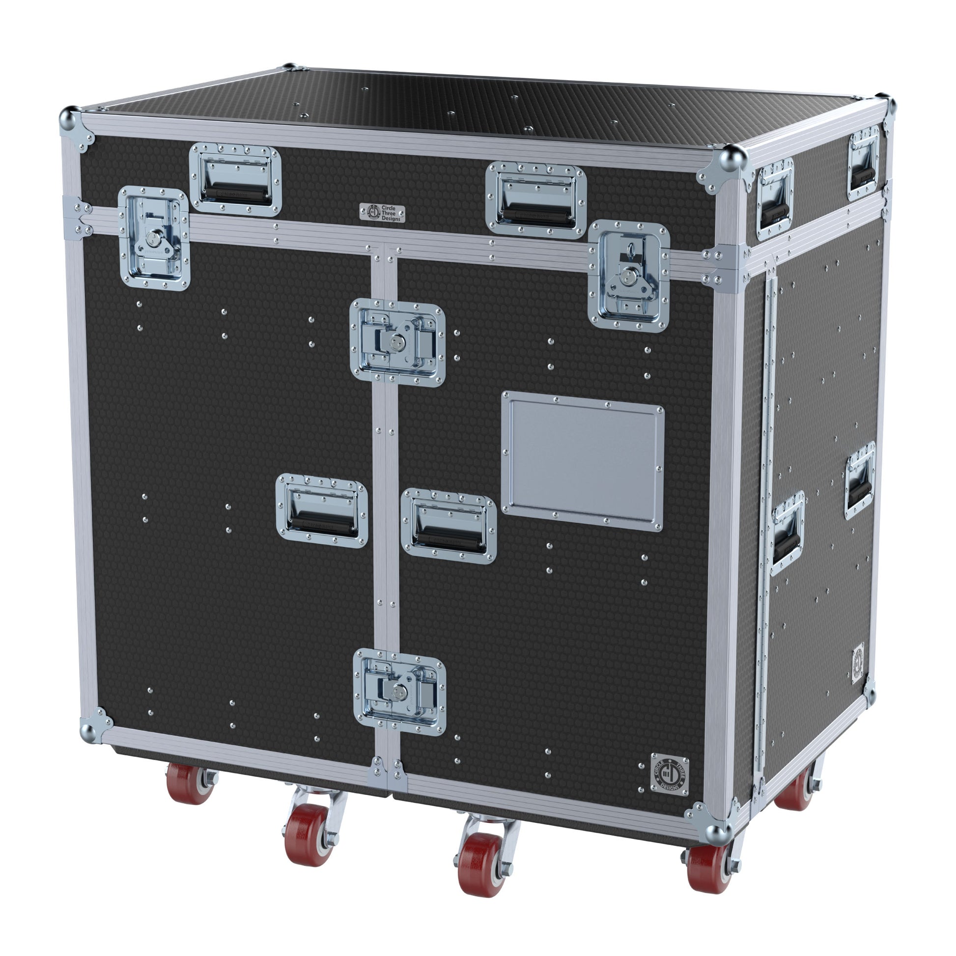 Casters: Six extra heavy duty 4" casters (non-locking) each rated at 750 pounds. All cases come with a full length 3/4" Baltic Birch caster pallet.