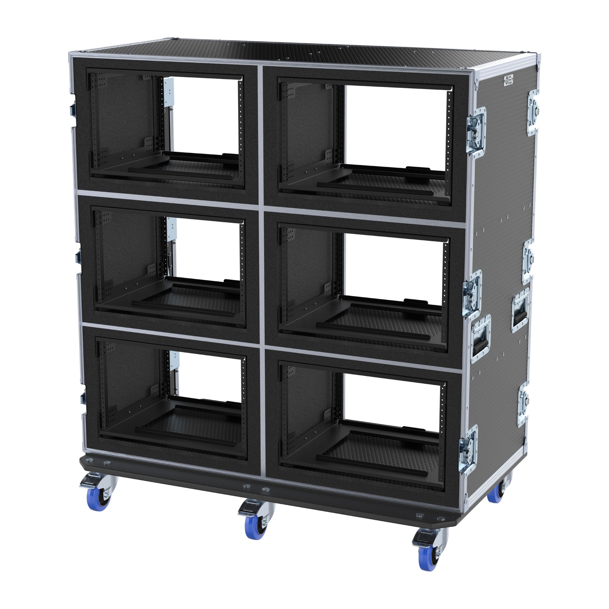 Casters: Six 4" casters (2 or 3 locking) each rated at 450 pounds. All cases come with a full length 3/4" Baltic Birch caster pallet.