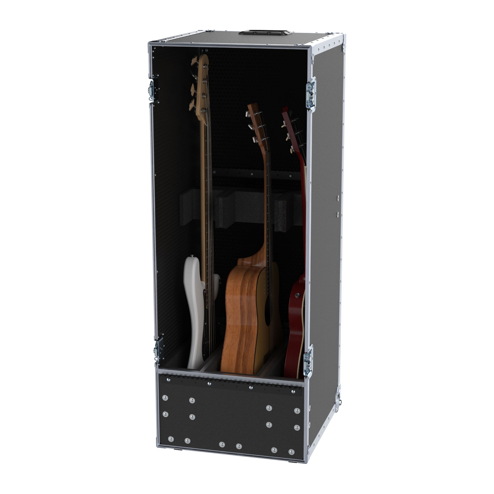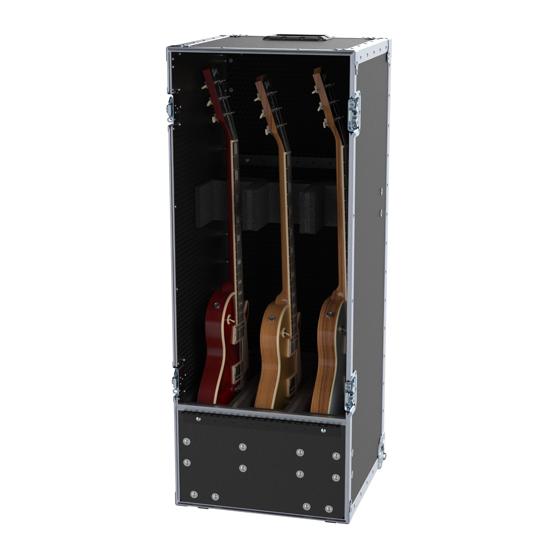 Design: These cases are designed to hold 3 electric guitars, 3 electric basses / guitars, or 1 acoustic guitar with 2 electric guitars / basses.