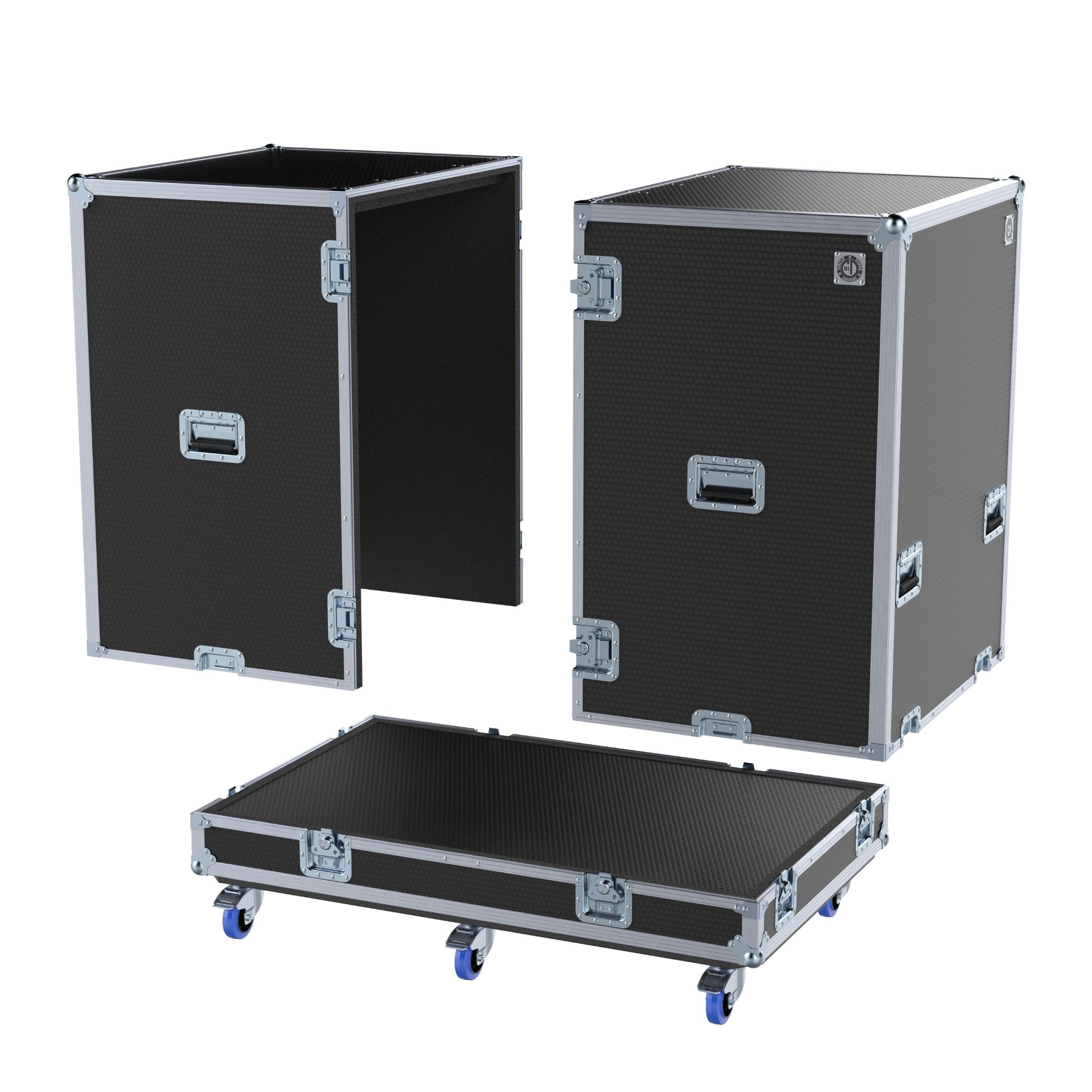 Casters: Four or six 4" casters (each rated at 450 pounds) or extra heavy duty casters (each rated at 750 pounds). All cases come with a full length 3/4" Baltic Birch caster pallet
