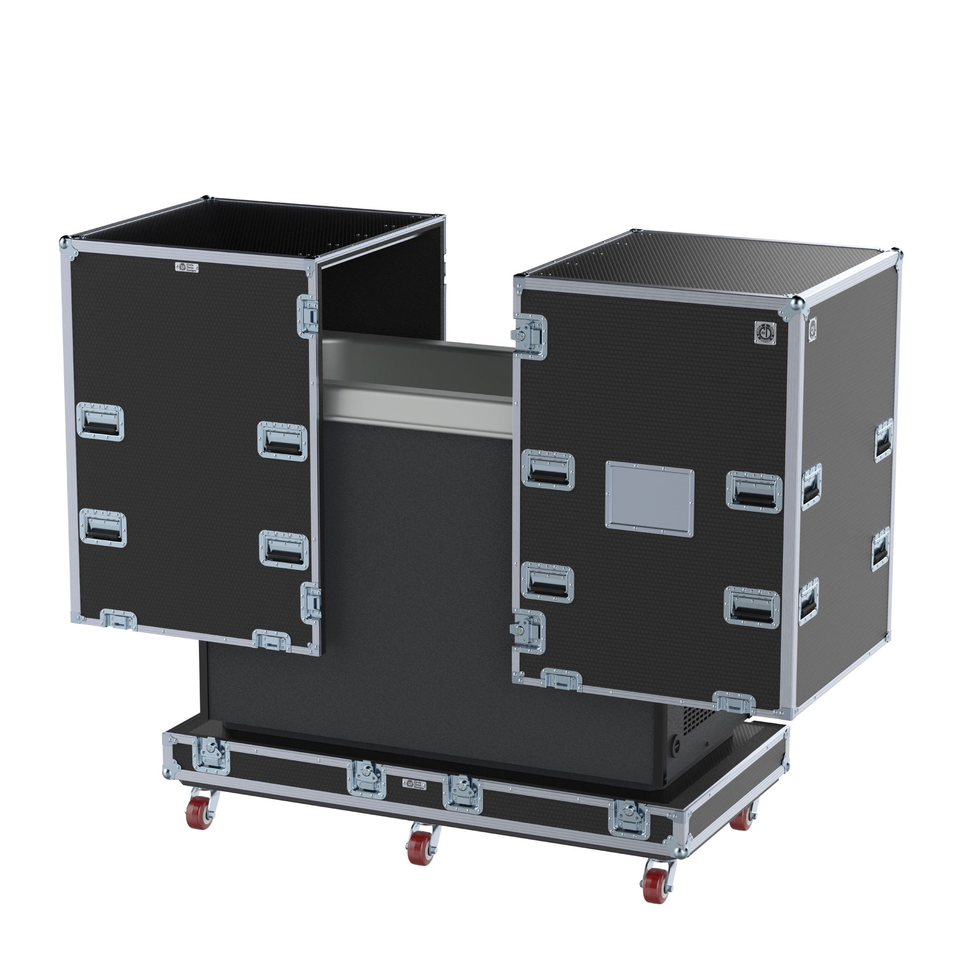 Casters: Six extra heavy duty 4" casters (non-locking) each rated at 750 pounds. All cases come with a full length 3/4" Baltic Birch caster pallet.