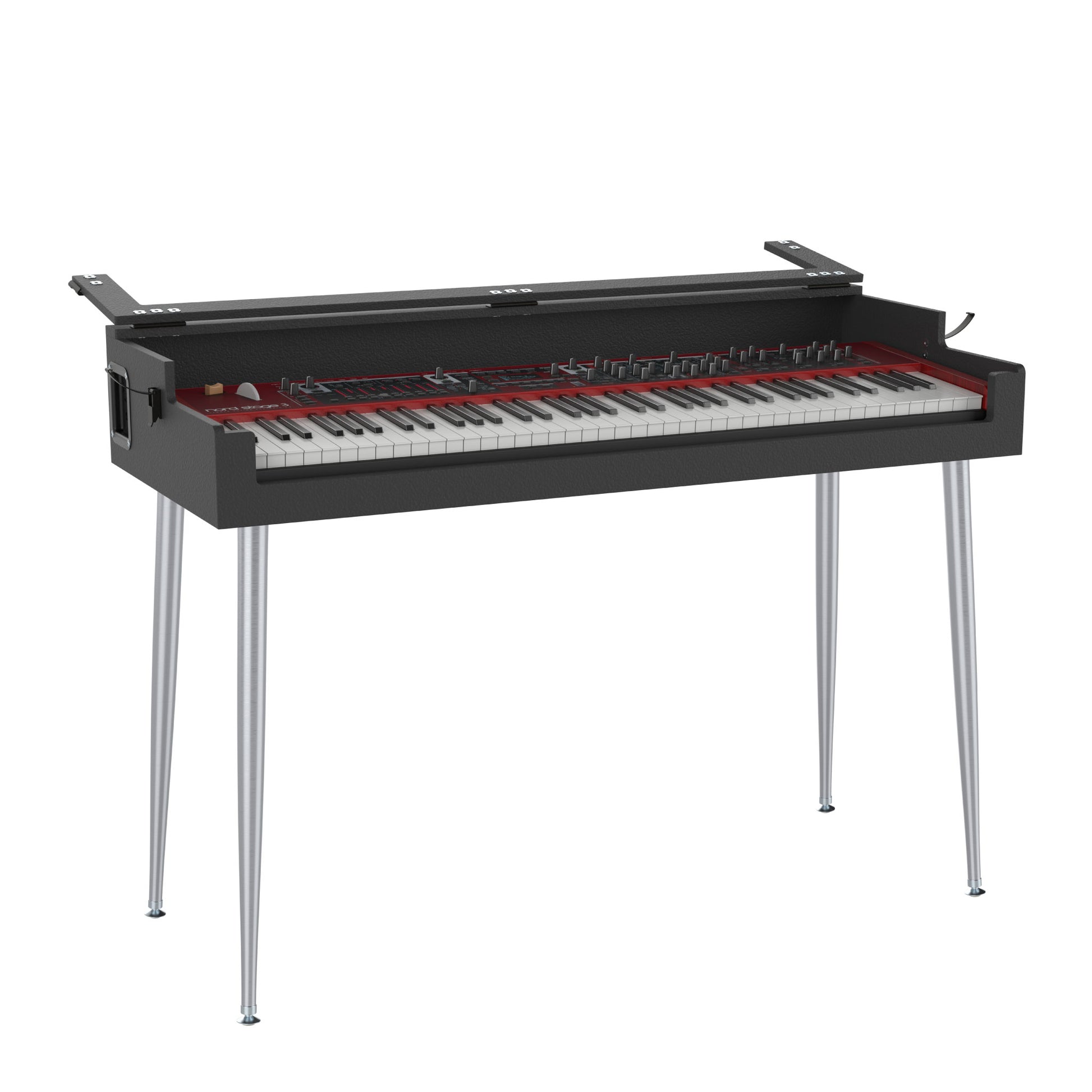 Legs: Wurlitzer style legs are available in sitting and standing heights. The flight case has a foam insert for the keyboard legs to travel in.