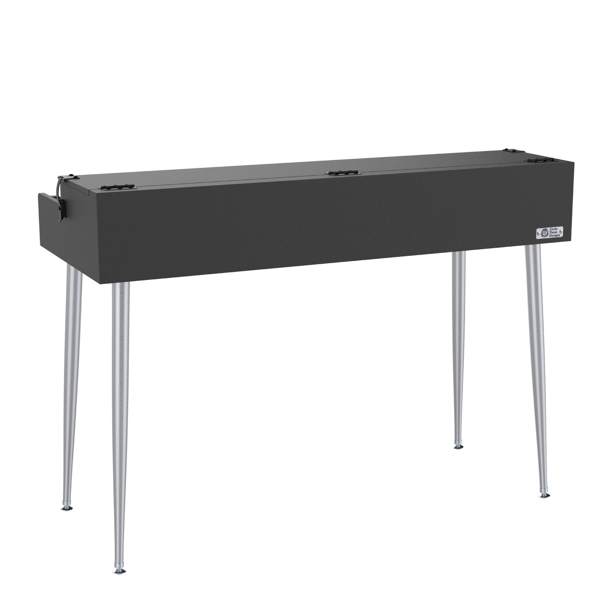 Legs: Wurlitzer style legs are available in sitting and standing heights. The flight case has a foam insert for the keyboard legs to travel in.