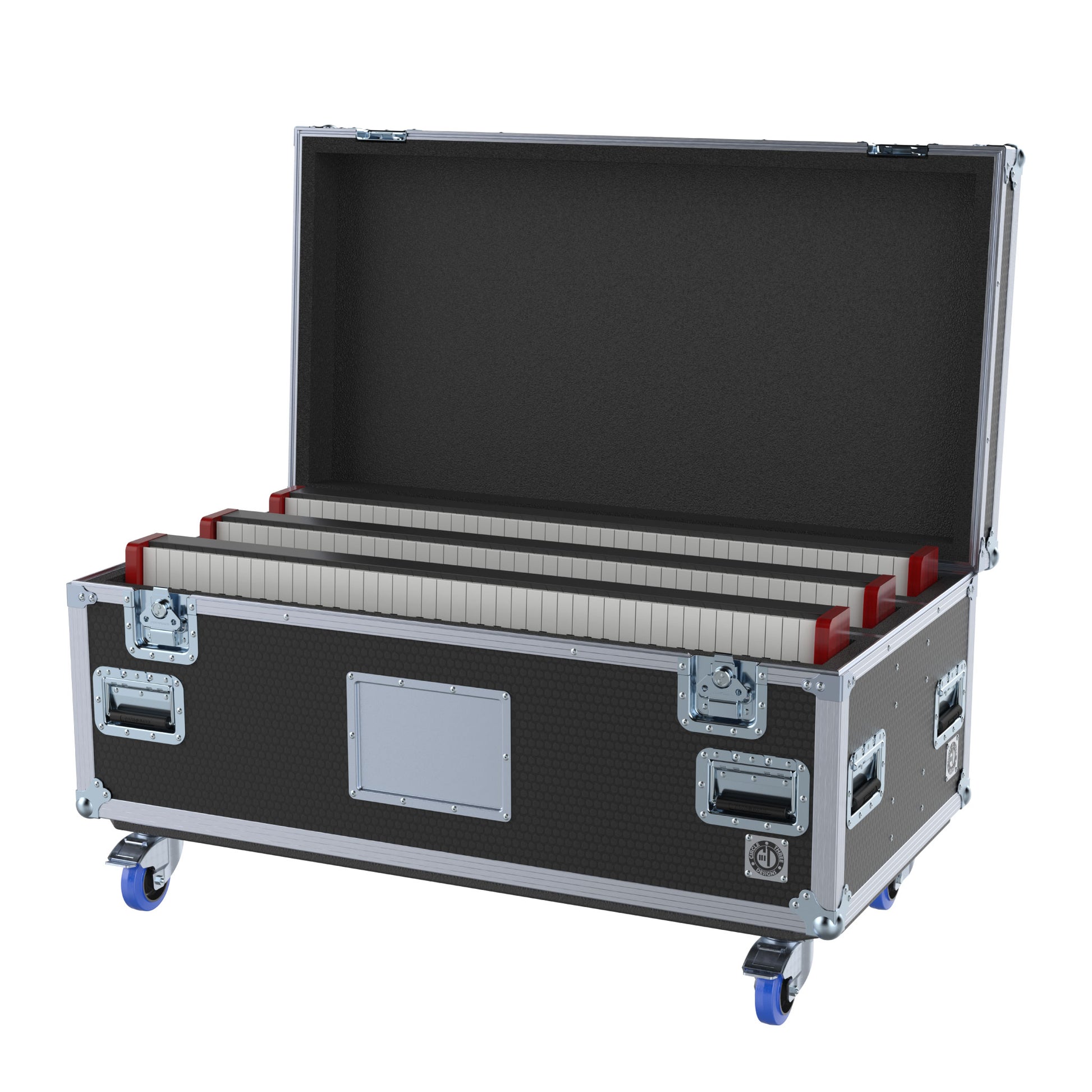 Casters: Four 4" casters (each rated at 450 pounds) can be used on cases that are deeper. Stacking caster cups can be added. All cases come with a full length 3/4" Baltic Birch caster pallet.