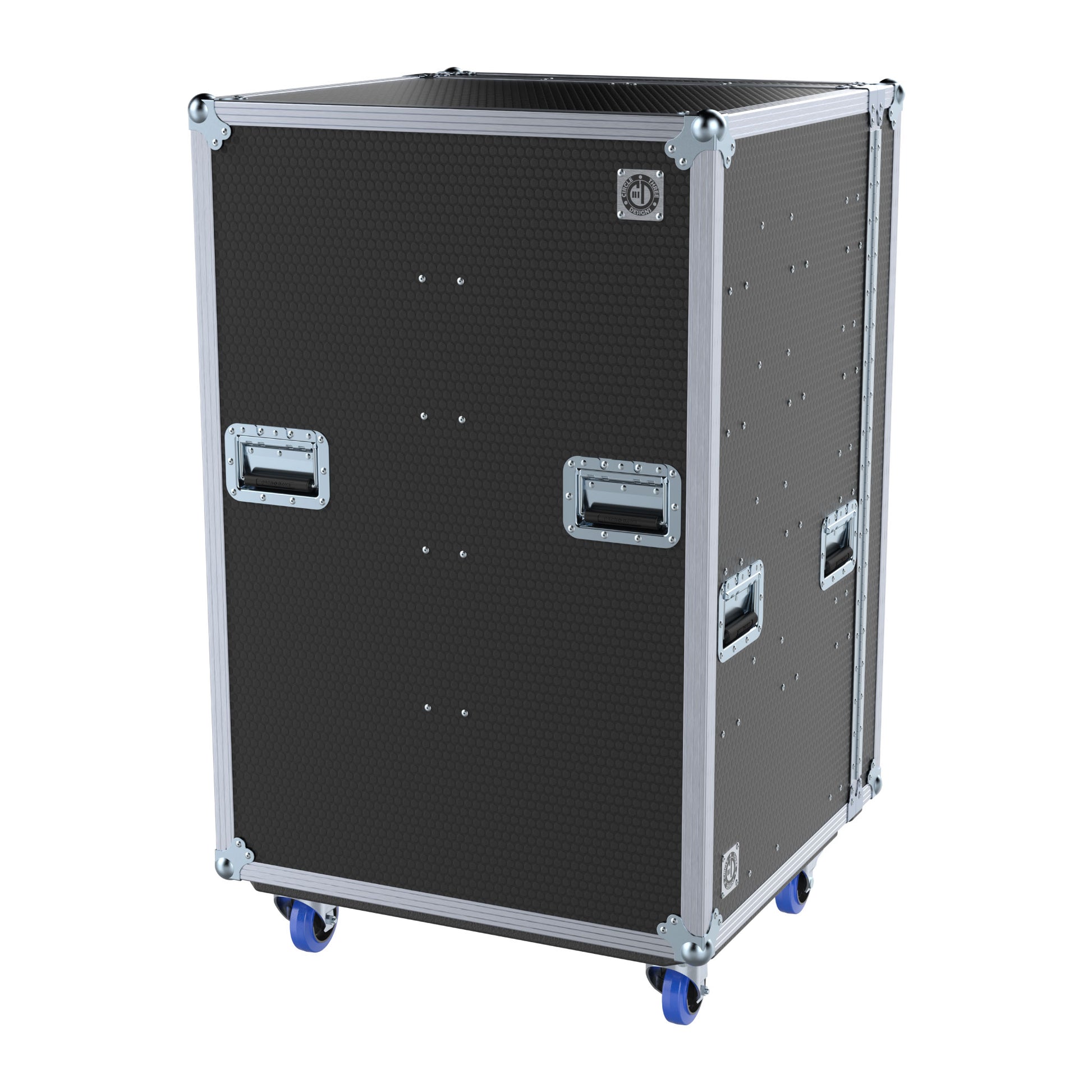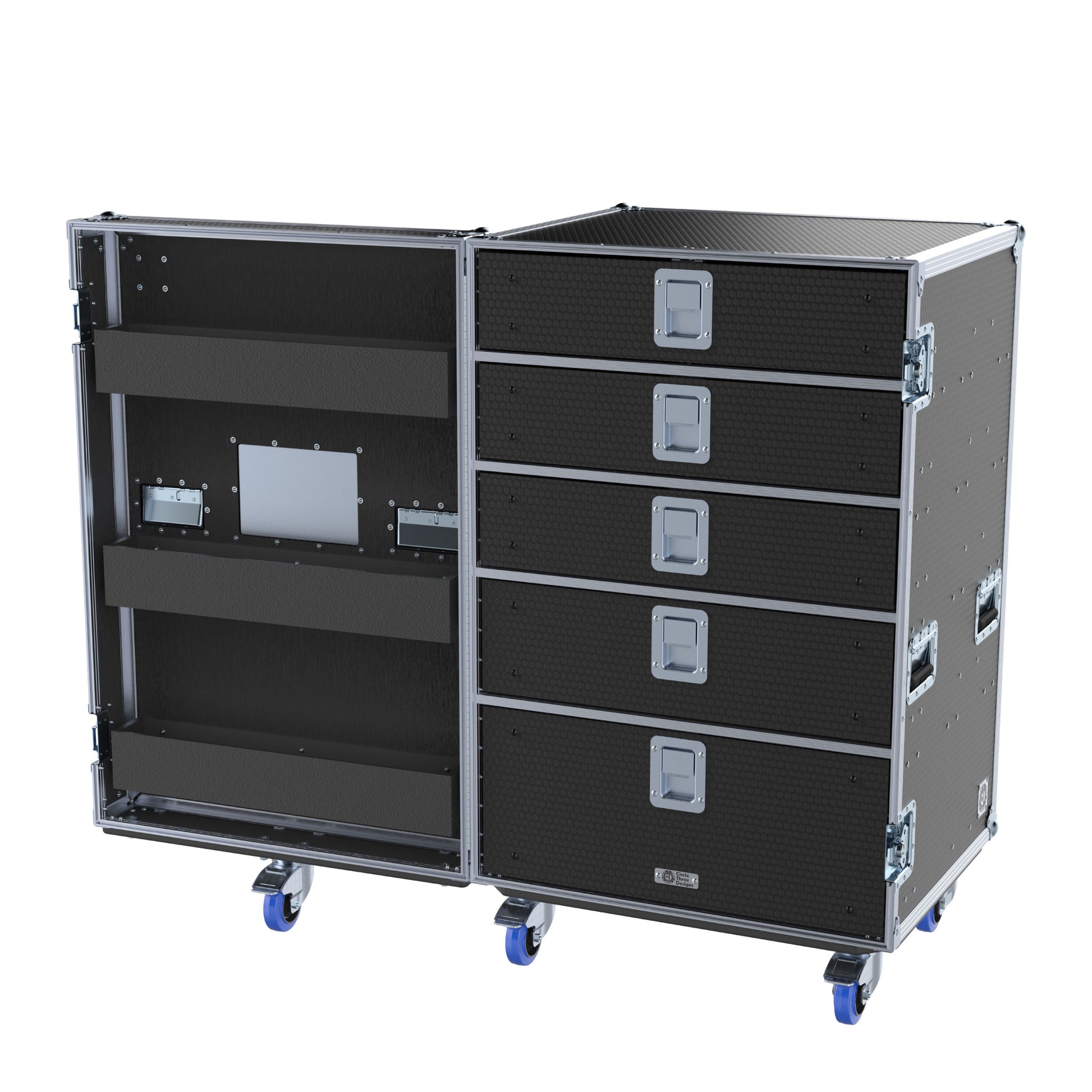 Casters: Five 4" casters (3 locking) each rated at 450 pounds. All cases come with a full length 3/4" Baltic Birch caster pallet.