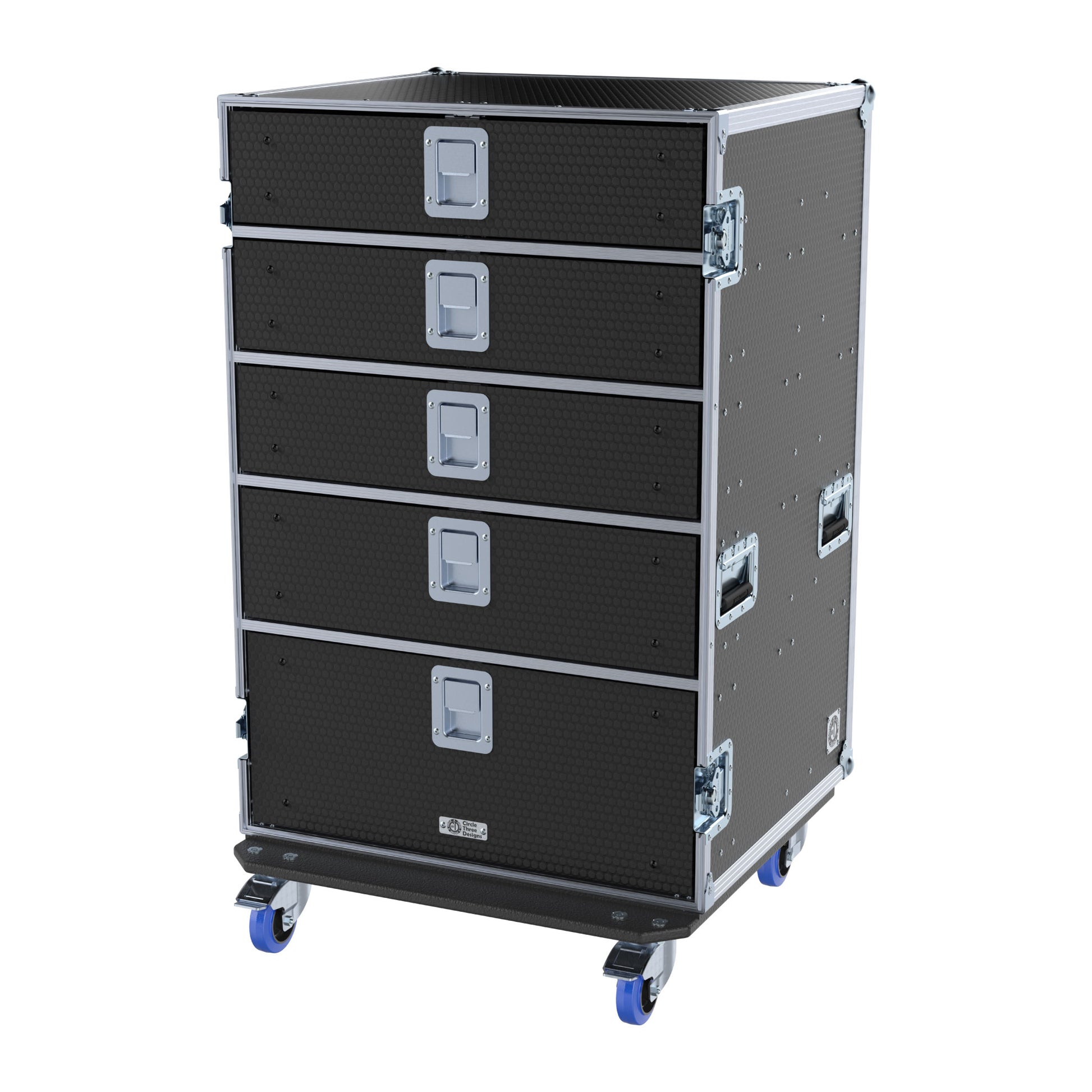 Design: Removable front lid with optional telescoping table legs inside the lid. Standard designs include 3, 4, and 5 drawer configurations.