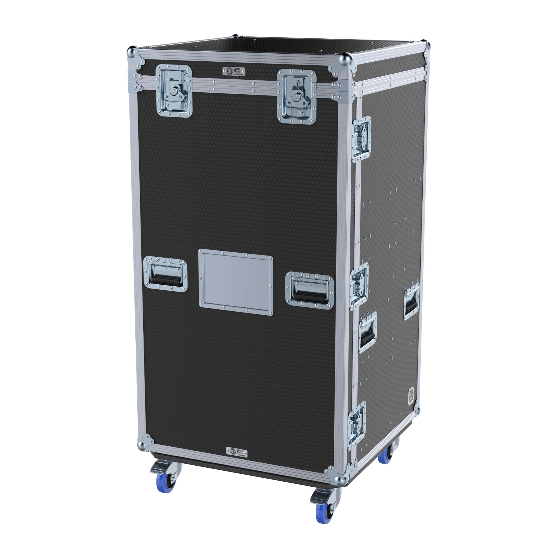 Casters: Four 4" casters (2 locking) each rated at 450 pounds. All cases come with a full length 3/4" Baltic Birch caster pallet.